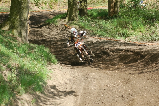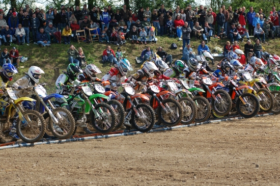 Im freien Training okay, im Pflichttraining fuhr ich die 19-te Zeit und damit war der Startplatz festgelegt, wegen schwacher Beteiligung gab es nur eine Gruppe. Da ich das erste Mal in Kamp-Lintfort angetreten bin, war ich etwas überrascht von einigen Sprüngen, um vorne zu fahren musste man mit vollem Speed über so einen Schnapper bei der Zieldurchfahrt um nach vielleicht 25m voll ins Flache zu knallen. Ich habe dabei nur eine Speiche abgerissen, mein Teamkollege gleich 5 !