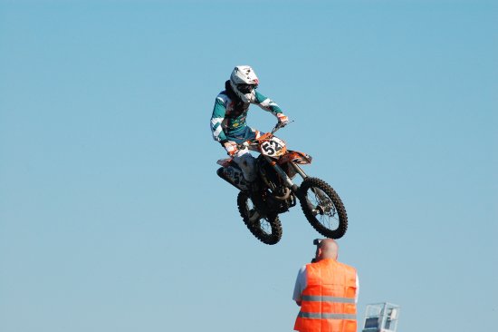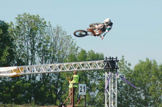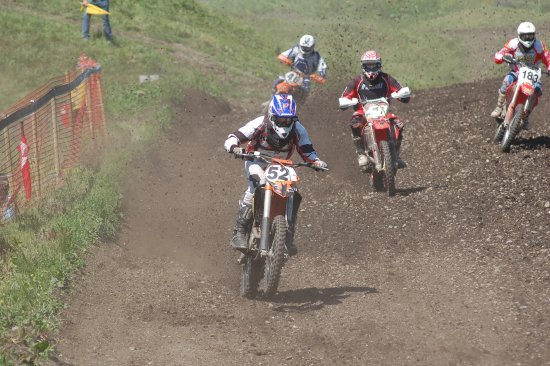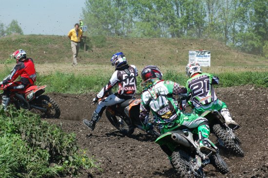 Der Start zum 2-ten Lauf war eine Kopie des Ersten, nicht wirklich gut aber auch nicht ganz hinten - noch nicht. Nach den 3 Tables am hinteren Zaun parallel zur Startbahn kollidierten 2 Fahrer direkt vor mir und so vergrub ich mein Vorderrad im Bike des vor mir Liegenden zwischen Hinterrad und Auspuff. Bis ich mein Bike wieder befreit hatte und mich auf den Weg machen konnte, war das Feld weg und ich an 37-ter Position - hätte schlimmer kommen können, es waren ja noch 3 Fahrer hinter mir und 30 Minuten vor mir. Diese Zeit nütze ich, so gut es ging. In manchen Runden schaffte ich gleich 4 Fahrer, in machen 2 und dann wieder hatte ich mich hinter einem festgebissen, insgesamt war das Rennen okay- nicht gut aber auch nicht wirklich schlecht. Bis zur Zieldurchfahrt war ich immerhin noch bis Platz 19 vorgefahren und auf meinen Teamkollegen Dennis fast aufgelaufen.