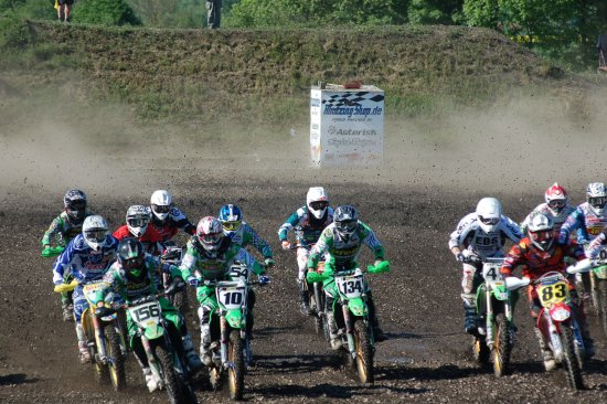 Das Qualifying verlief okay, ich schaffte die 7-te Zeit meiner Gruppe und das bedeutete den 13-ten Startplatz. Der Start zum ersten Lauf war auf den ersten Metern okay, aber dann zogen die links und rechts neben mir vorbei - die Holeshot-Prämie konnte ich vergessen - und landete im hinteren Mittelfeld. Auf Platz 27 kam ich aus der ersten Runde zurück und kämpfte mich mühsam bis auf Platz 18 vor, mehr war leider nicht drin. Die sind halt alle sauschnell in der DMO.