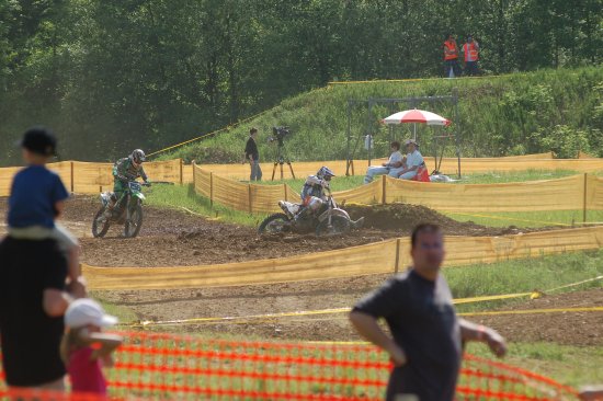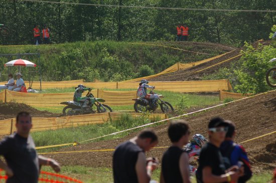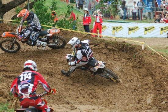 Am Sonntag waren die Erwartungen schon ziemlich hoch, im Warmup war ich gut drauf und freute mich schon auf das Rennen vor richtig viel Zuschauern. Den Start zum ersten Lauf erwischte ich nicht ganz optimal und musste in der ersten Kurve zurückstecken und begann auf Platz 8 das Rennen. Zwei Fahrer konnte ich überhohlen, als mir beim 3-ten das Vorderrad wegrutschte und ich Kontakt zum Boden aufnahm. Ein paar Plätze zurück habe ich das Rennen wieder aufgenommen und war schon wieder auf dem Weg nach vorn, als ich zum 2-ten Mal zu Boden ging - zuviel Motivation ist eben kontraproduktiv! Ziemlich unzufrieden beendete ich das Rennen auf Platz 10 mit der Gewissheit, dass mehr drin gewesen wäre, wenn ...