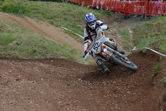 nach dem letzten erholsamen Renn-freien Wochenende stand nun ein Lauf zur DM125 in Lugau auf dem Programm. Bei der Fahrt am Samstag hat es gegossen was runterkam, mein Dad hat schon wieder rumgejammert von wegen Putzparty und so, doch je näher wir unserem Ziel kamen umso weniger Regen prasselte auf unsere Scheibe. Das Fahrerlager war zwar nass aber nicht durchweicht, ebenso die Strecke, die nur oberflächlich glänzte. Am Sonntag war das Wetter super, nicht zu warm und trocken, und die Strecke etwas feucht. Mein Dad war richtig erleichtert.