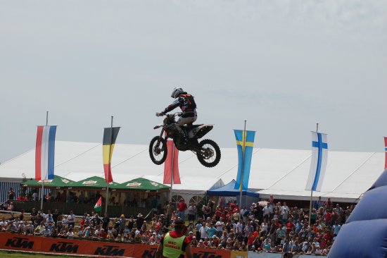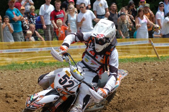 Der Start zum 1-ten Lauf war endlich wieder 'mal richtig gut, und so konnte ich als Erster in die Startkurve einbiegen. Ich fand sofort einen sehr guten Rythmus und konnte mich kontinuierlich vom Feld absetzen. Mein Team zeigte mir an, dass mein Vorsprung von Runde zu Rund anstieg, sodass ich entspannt mein Rennen fuhr und so meinen ersten Laufsieg schaffte - und das vor vielen Tausend Zuschauern.