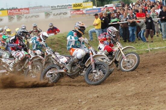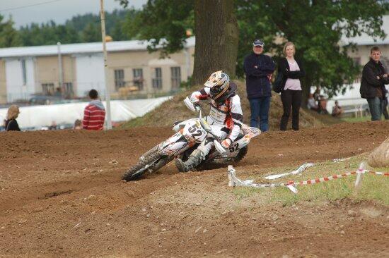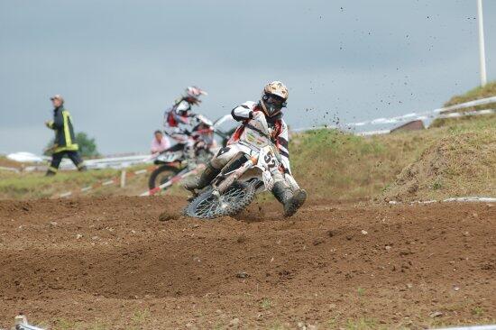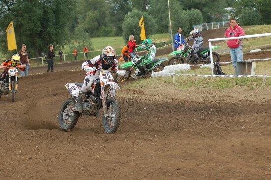 Beim 2-ten Lauf entschied ich mich wieder für eine ähnliche Position im Startgatter, aus dem ich diesmal richtig gut rauskam und als 2-ter in die Startkurve einbog. Leider hatte ich etwas Fahrtüberschuss und fuhr in den lockeren Sand, sodass ich etwas Schwung verlor und ein paar Plätze abgeben musste. Habe dann einige Runden benötigt, um richtig in Schwung zu kommen. Als ich dann wieder richtig Fahrt aufnahm war Sebastian Schöffel schon wieder vorbei. Ich blieb aber an seinem Heck kleben, und hatte wieder einen richtig guten Fight, der erst beendet wurde, als das Hinterrad von Sebastian eine andere Richtung einschlug als der Rest des Bikes, und Sebastian eine Highsider verhindern konnte, aber dennoch zu Boden musste. So habe ich die 5-te Position wieder bekommen, musste mich aber nach hinten absichern, denn da war mir wieder einer dicht dran. Mit meinen letzten Reserven fuhr ich mein Rennen zu Ende, nur 2 Motorradlängen hinter Müller, auf den ich kontinuierlich aufgeholt hatte.
