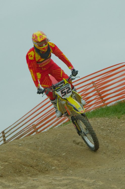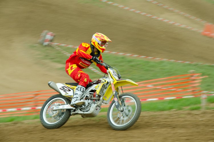 Im ersten Lauf hatte ich einen nicht so besonderen Start, und bog als ca. 15er in die erste Kurve ein. Ich habe dann etwas Gas gegeben und mich nach relativ kurzer Zeit bis zur Spitze vorgearbeitet, die ich dann übernahm und als Erster die Zielflagge sah.