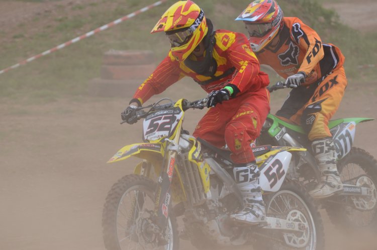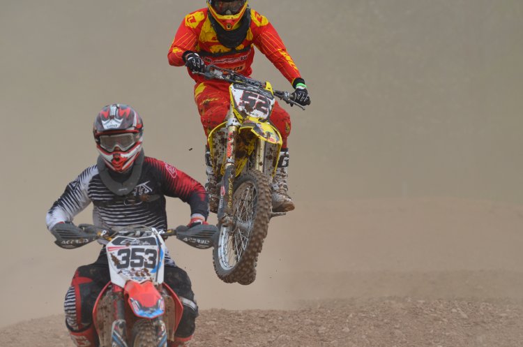 In der Pause habe meine Mechs dann alle Hände voll zu tun gehabt, die total verbogene Lenkerbrücke und einige ander beschädigte Teile auszutauschen. Beim Start zum zweiten Lauf war alles wieder bestens, allerdings war der Start wieder kein Hit, und so habe ich mich an ein paar Kollegen vorbeikämpfen müssen und dann auch die Führung übernommen, die ich bis in das Ziel dann auch nicht mehr abgab. Immerhin 12,5 Punkte und damit Schadensbegrenzung.