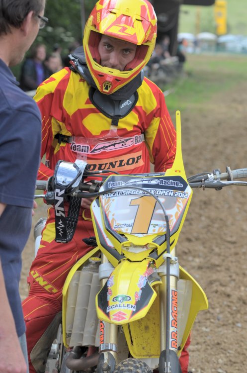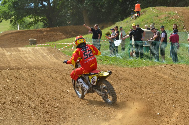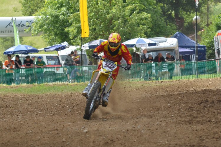 Nun war es soweit: der letzte Lauf zum Deutschen Moto Cross Pokal Süd der Klasse Open in Kaltenholzhausen stand auf dem Plan. Mit 13,5 Punkten Vorprung vor Patrik und 14 Punkte auf Marco sollte nichts mehr anbrennen. Am Samstag hatte der Verein ein Bennefiz-Training angesetzt, eine gute Sache, die wir natürlich gerne unterstützten und dabei das extra Training auf der tollen Strecke in KHH mitnahmen. Die Streckenposten hatten z.T. einen Jugendlichen dabei, die ihre Aufgaben gewissenhaft war nahmen. Ich denke, die hatten sicher einen tollen Eindruck von den Fahrern bekommen und werden nächstes Jahr wieder dabei sein.