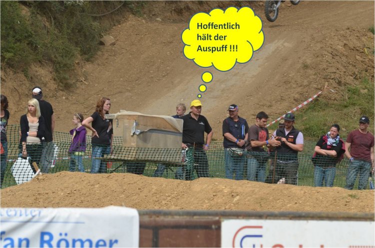 Das freie Training verlief ohne Probleme, im Pflichttraining gabe es seltsame Rundenzeiten, die ich mir zuerst nicht erklären konnte. Ich gab wirklich alles, fuhr super-konzentriert meine saubersten Spuren und drehte richtig am Gasgriff, und dennoch war ich nur irgendwo an 6-ter Stelle, mit 3-4 Sekunden Rückstand auf die schnellsten Zeiten. Dann gab es auch noch Fabelzeiten von 1 Minute! die Erklärung war dann einfach: nach dem Zielsprung ist die Funkschleife der Zeitnahme eingegraben, die Kollegen haben dann nach einer Runde und dem überfahren der Schleife umgedreht und sind am Rand entlang in Richtung Start gefahren, um eben einen Start zu üben. damit überfuhren sie die Schleife und haben die Zeit getriggert. Nach dem Start haben sie dann die Schleife ein 2-tes mal überfahren und so die tollen Rundenzeiten geschafft. Die überprüfung war dann einfach: die Zeit nach einer sehr kurzen Rundenzeit, im Bereich einiger Sekunden, konnte dann nur die Zeit des Starttrainings sein. Nachdem diese Zeiten bereinigt waren, wurden meine Anstrengungen doch noch mit der schnellsten Quali-Zeit belohnt.