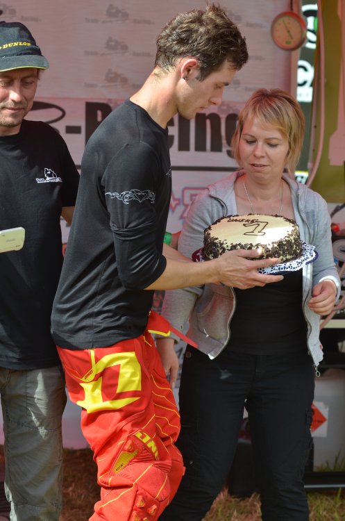 Achim hat mir dann auch sofort eine Nummer 1 Startnummerntafel überreicht, er war seiner Sache wohl ziemlich sicher. Und von Frankie's Frau bekam ich auch noch eine Nummer 1 Himbeer-Sahne Torte - Mann, waren die sich sicher...
